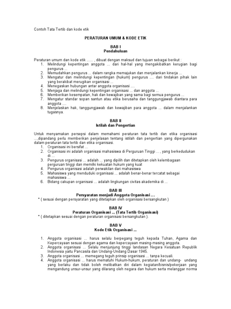 Contoh Tata Tertib Dan Kode Etik Organisasi Pdf