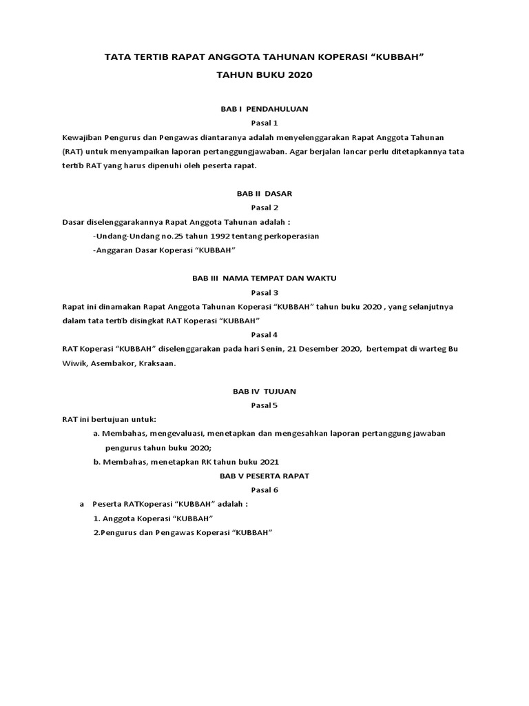 Tata Tertib Rapat Anggota Tahunankoperasi Pdf